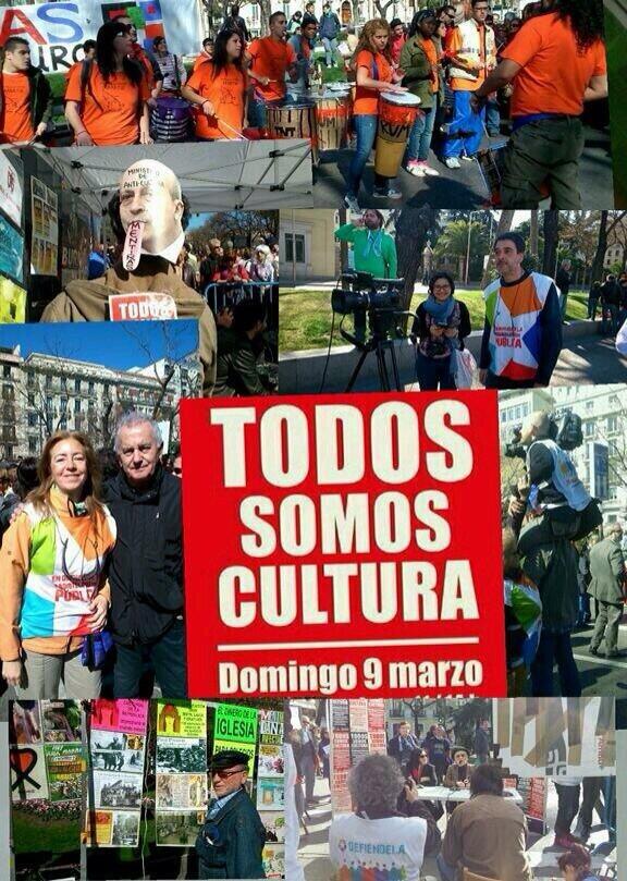 El acto ha sido organizado por la Plataforma en Defensa de la Cultura , una asociación que reúne a más de 80 asociaciones y que, entre otras cuestiones, se opone a la privatización de espacios culturales de uso público, pide la rebaja del IVA cultural y que se garantice el acceso de la cultura a toda la ciudadanía.